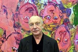 Hans-Georg Kern better known as Georg Baselitz (°1938 in Deutschbaselitz)painter, sculptor and printmaker pioneered Neo-Expressionist and deliberately employing a raw style in order to convey direct emotion. End of the 60’ies Baselitz began to paint his subjects upside down in order to slow down his process of painting as well as the viewer’s comprehension of the motif; achieving a form of abstraction while maintaining figuration.